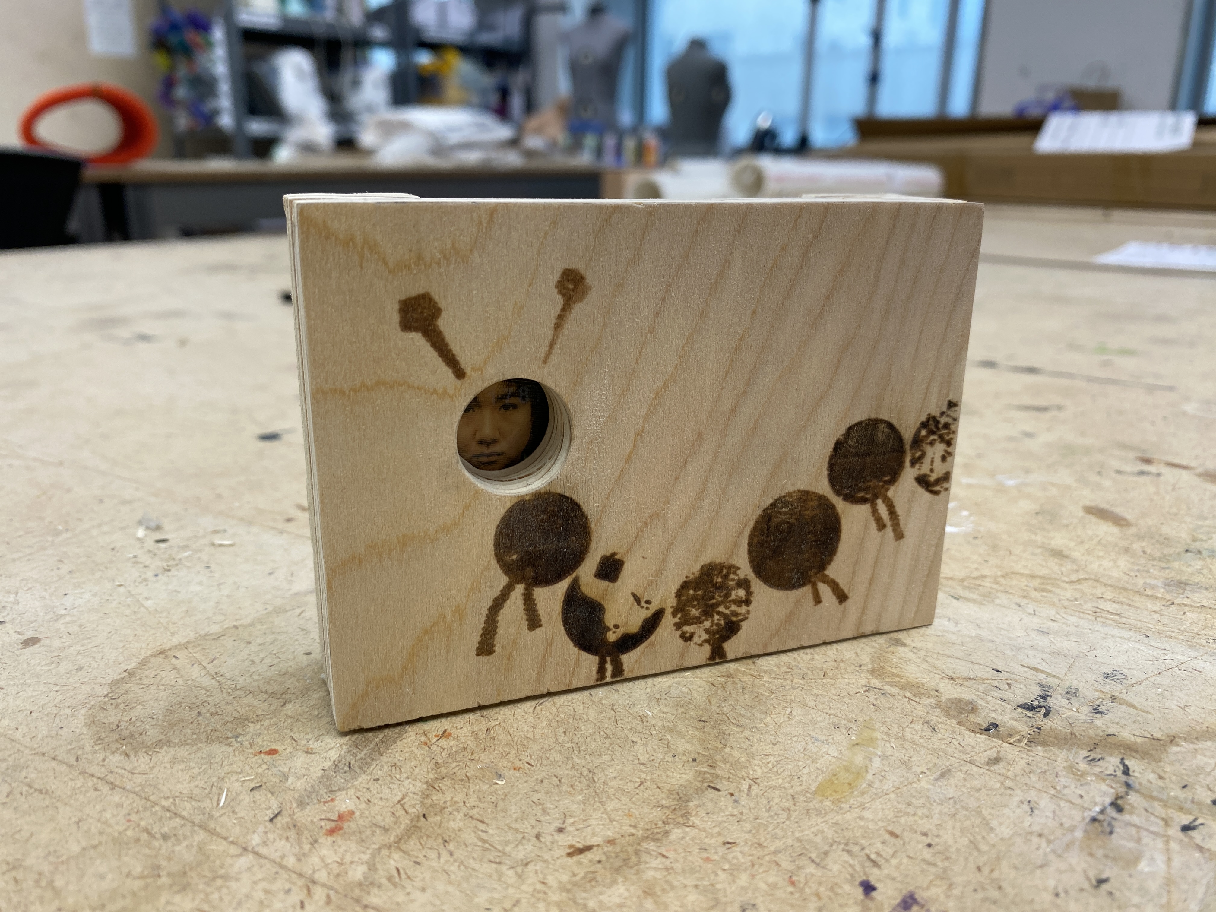 A total diva table that will roast whatever you put on her and try to tip it off. I created her character, plus costume design (or...decoration? I’m not sure what to call it). Mumu and Charles handled the programming (object detection, API, text generation and TTS), Link acquired the table and did all the physical computing.
